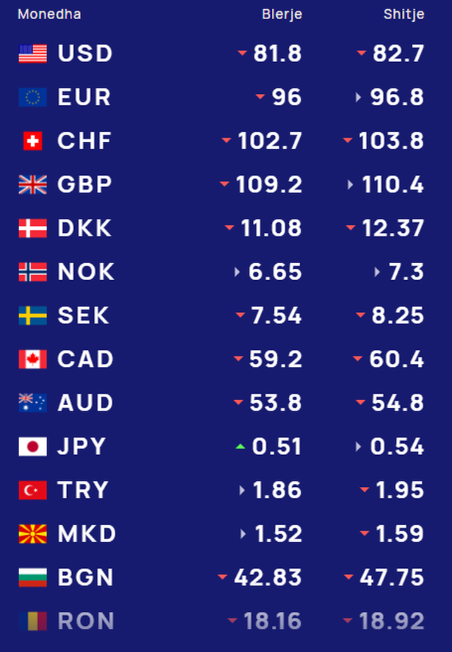 Ndërsa paundi britanik blihet me 109.2 lekë dhe shitet me 110.4 lekë.
