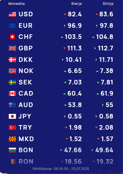 Ndërsa paundi britanik do blihet me 111.3 lekë dhe do shitet me 112.7 lekë.