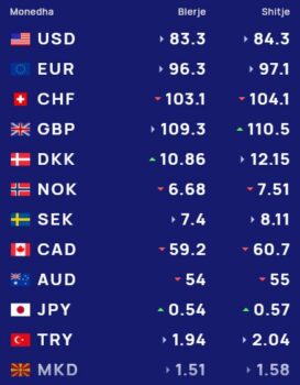 Ndërsa paundi britanik blihet me 109.3 lekë dhe shitet me 110.5 lekë.