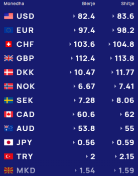 Euro do të blihet me 97.4 lekë dhe do të shitet me 98.2 lekë.