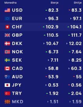 Ndërsa paundi britanik blihet me 110.5 lekë dhe shitet me 111.7 lekë.