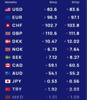 Ndërsa paundi britanik blihet me 110.6 lekë dhe shitet me 111.8 lekë.