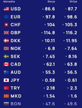 Euro do të blihet me 97.8 lekë dhe do të shitet me 98.6 lekë.
