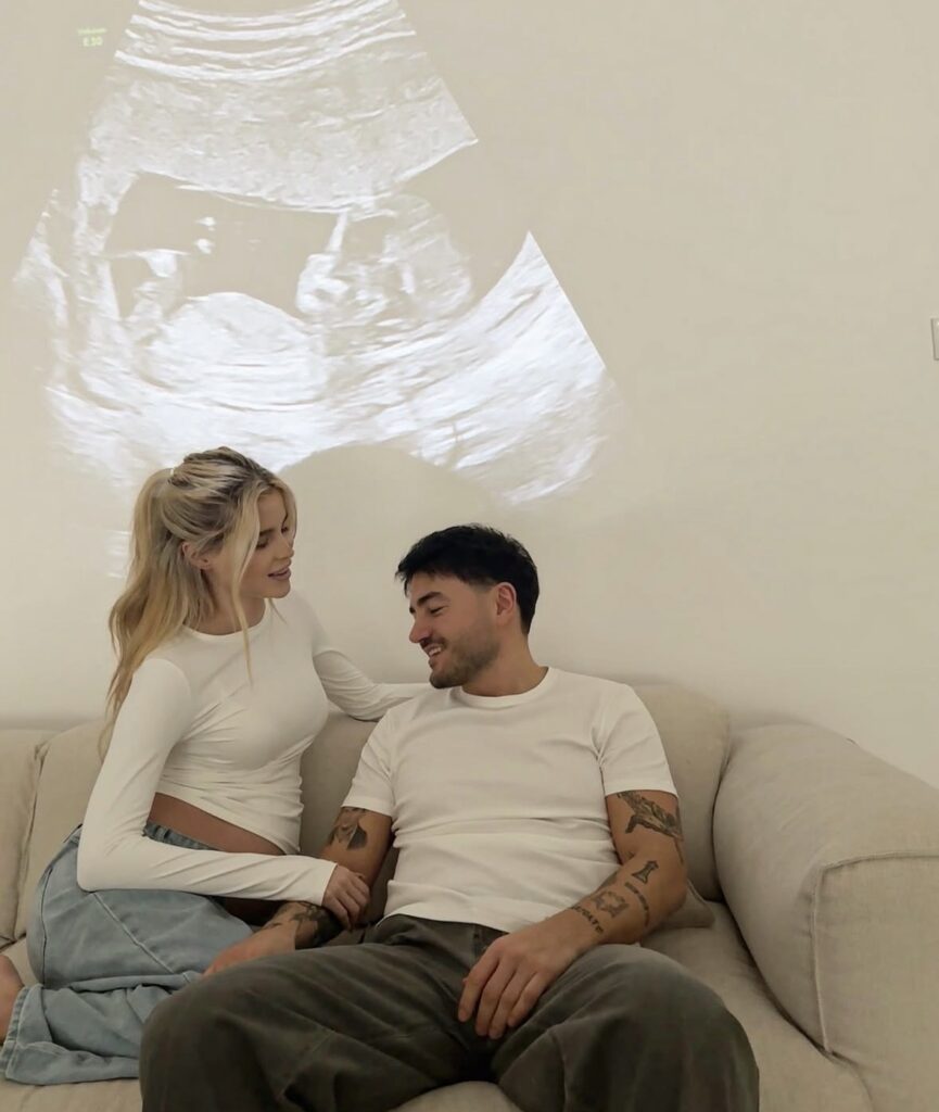 Në foton e publikuar, çifti shfaqet i ulur në një ambient intim, ndërsa në sfond projektohet ekoja e bebit një detaj simbolik që i dha publikimit një dimension emocional dhe artistik. Krahas imazhit, këngëtari shkroi: “Nga dashuria jonë po lind një jetë e re. Mirë se vjen, engjëlli ynë,” duke konfirmuar kështu lajmin që u prit me shumë entuziazëm online.