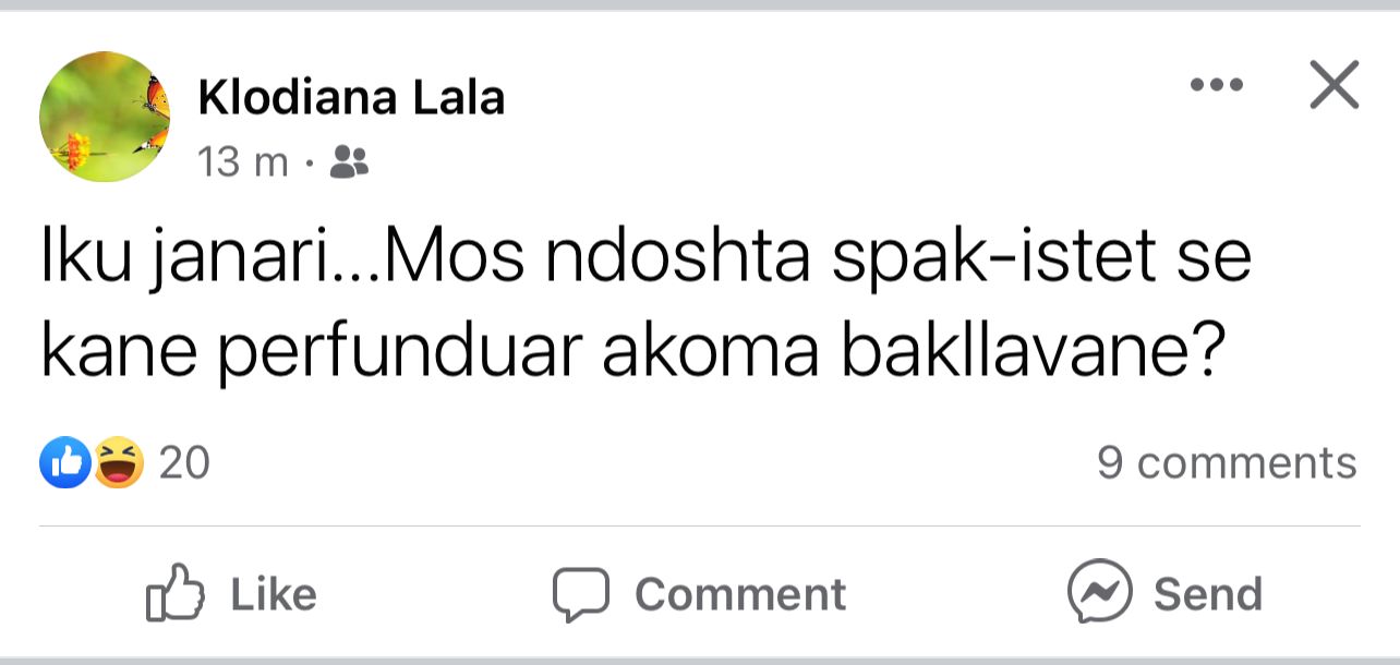 “Iku janari, mos ndoshta spakistët nuk e kanë përfunduar ende bakllavanë?”, ka shkruar Lala.