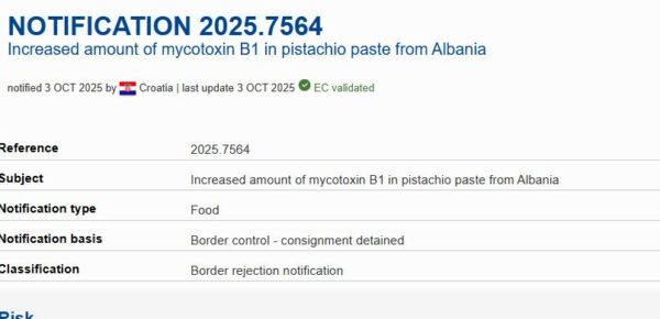 Sistemi Evropian RASFF ka njoftuar se ngarkesa me ‘pastën e fistikëve’ apo gjalpë stikash nga Shqipëria është ndaluar në kufi për shkak të prezencës së lartë të Aflatoksinës.