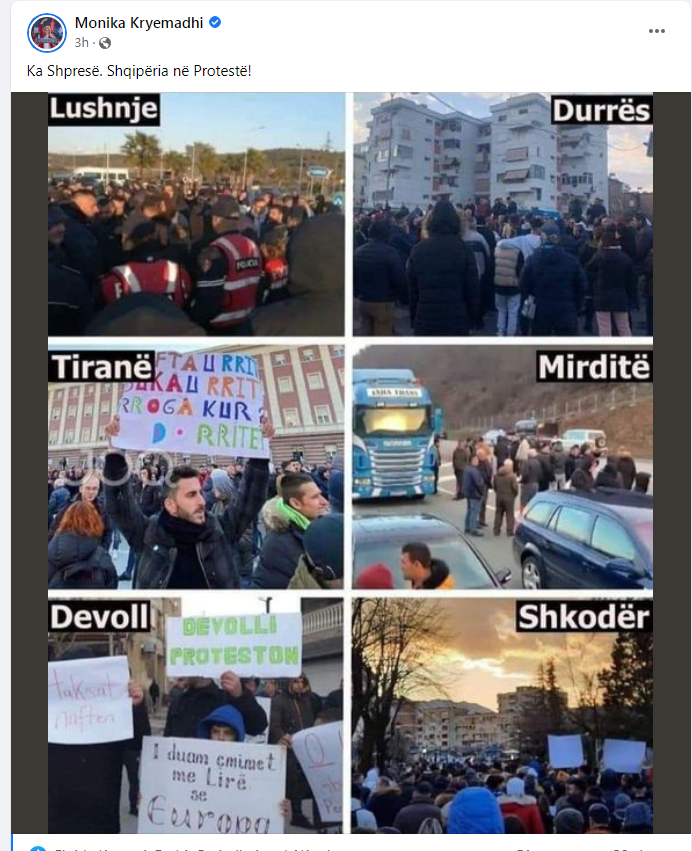 Në një postim në “Facebook”, Kryemadhi pulbikon foto nga protestat në disa rrethe.