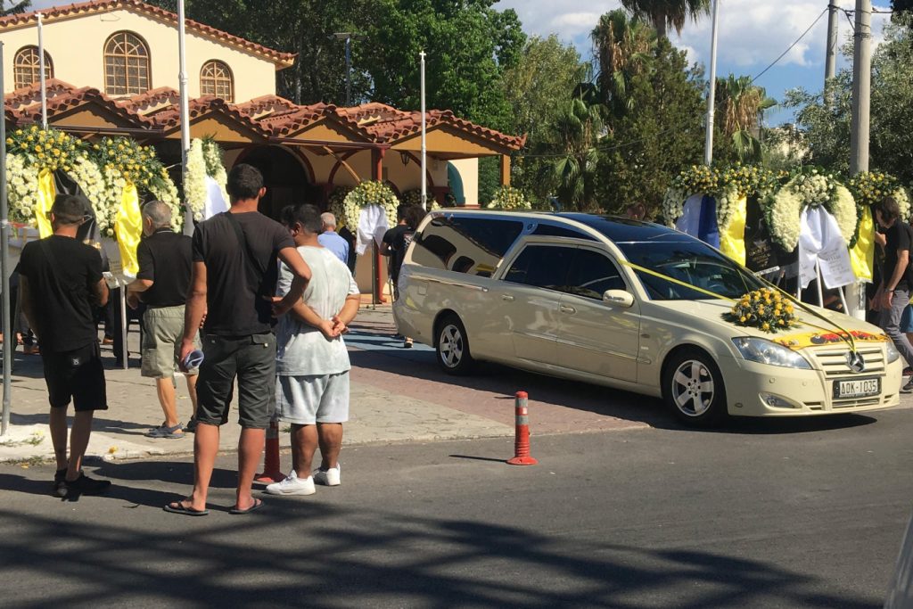 Me lule të verdha në duar, miqtë i dhanë lamtumirën e fundit 29-vjeçarit Mihalis në kishën e Agios Konstantinos në Elefsinë.