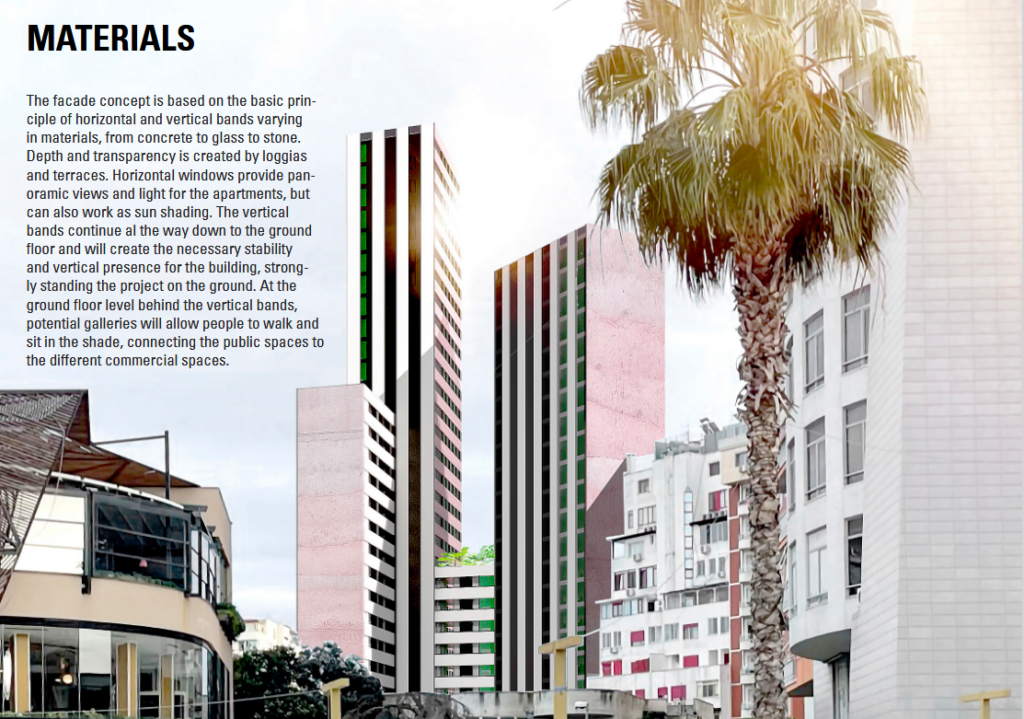 Projekti “Durrësi Tower” do të zhvillohet në vend të godinave 2 dhe 3 kate në pronësi të familjes Fani. Kulla më e vogël që do të ndërtohet do të jetë 8 kate, ndërsa të tjerat 17, 24 dhe 30 kate.