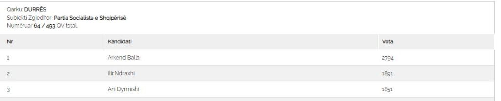 Aktualisht, kryeson bindshëm Arkend Balla me 2794 vota preferenciale, duke u pozicionuar i pari me një diferencë të konsiderueshme nga ndjekësit. Por gara më interesante zhvillohet për vendin e dytë, ku Ilir Ndraxhi dhe Ani Dyrmishi po shkëmbejnë pozicionet në mënyrë të vazhdueshme.