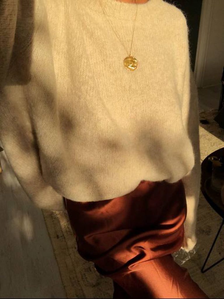 Pavarësisht se secili prej nesh ka stil unik dhe jo gjithçka që është trend mund t’i shkojë, kombinimi pulovër + fund mëndafshi nuk të zhgënjen kurrë. Mjafton të jetë fundi i preferuar me golfin që ndjeni më shumë rehat! Pasi të keni mbaruar me to, mund t’i kombinoni me çizme, këpucë të sheshta ose atlete gjatë ditës.