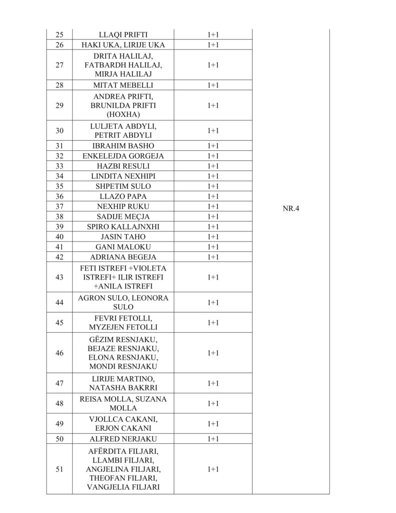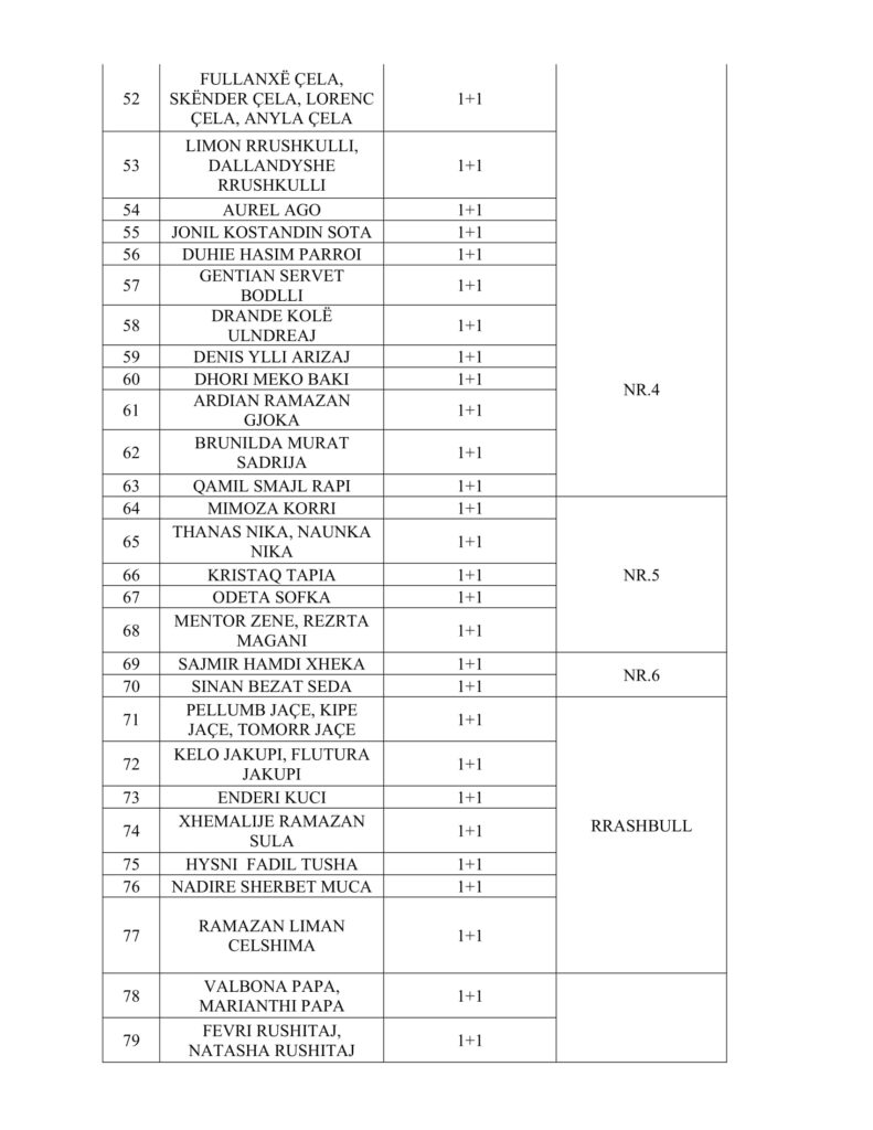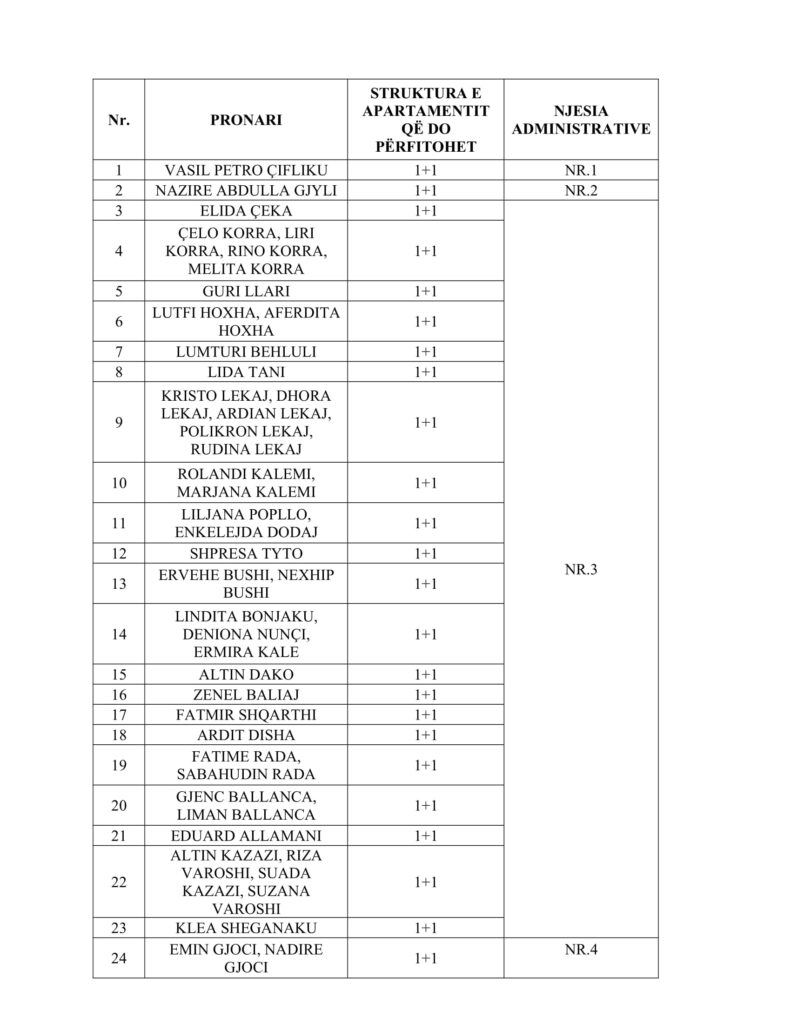 Lista me emrat e 154 përfituesve të apartamenteve 1+1: