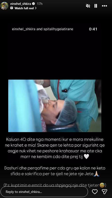 “Dhe një zemër më shumë. Faleminderit Zot,” shkruan Einxhel krah videos.