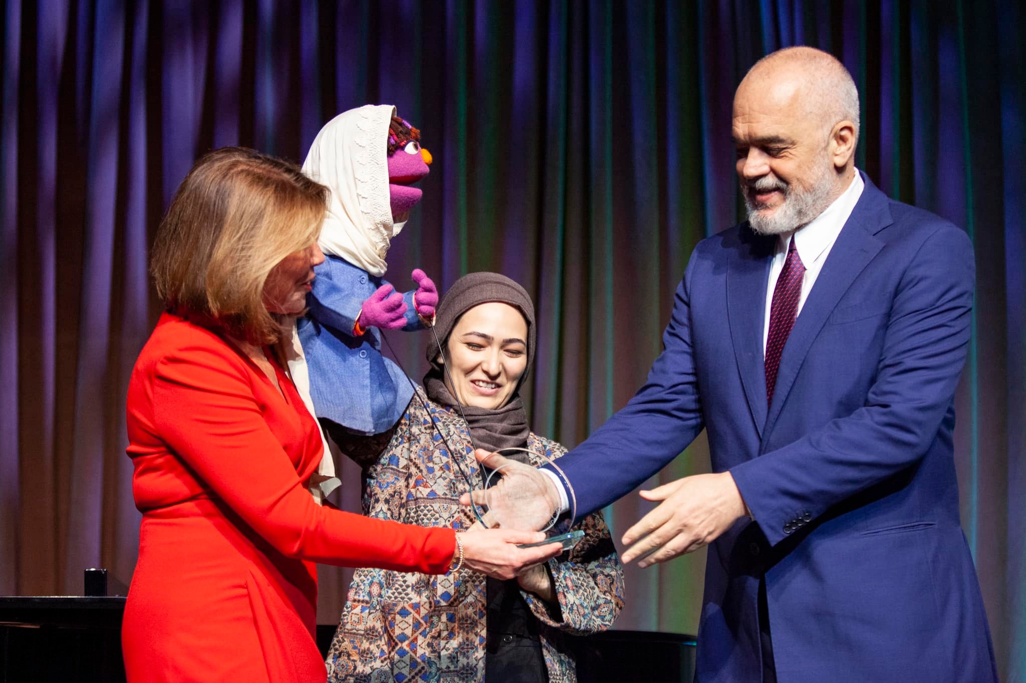 *Shumë i nderuar për vlerësimin me çmimin prestigjioz “Joan Ganz Cooney Global Leadership Award”, i cili i takon Shqipërisë dhe shqiptarëve pa dallim, për vlerat e traditës së mikpritjes si edhe kultivimin e tyre në ditët më të vështira për të tjerët, që nevoja i bën të trokasin në derën tonë🙏🇦🇱
