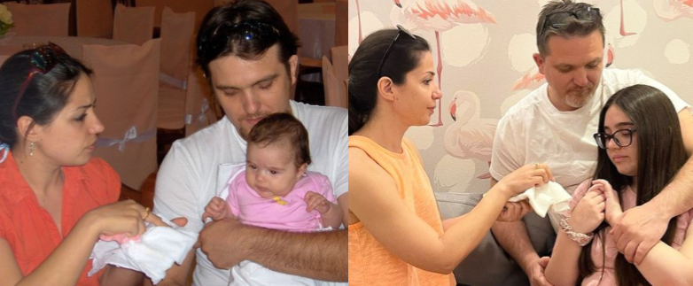 “U rrite zemra jone. Ne fakt u rritem bashke. Kur linde ti, per ne nisi gjithçka nga fillimi. Ne ishim te “vegjel” dhe s’dinim si “luhej” roli i prindit, ndersa ti ishe e vogel dhe s’dije ç’ishte kjo bote. Edhe sot vazhdojme t’ja mesojme njeri tjetrit keto te dyja. Nuk qenka e lehte, por nuk paska gje me te bukur. Sado te rritesh, une keshtu do te te mbaj dhe mami keshtu do kujdeset per ty. Nuk na shpeton dot zonjushe. Gezuar diten e lindjes drita e syve. Gezofsh gjithe jeten. Te duam Reina Mia, te duam shume. Zoti te bekofte…!”.