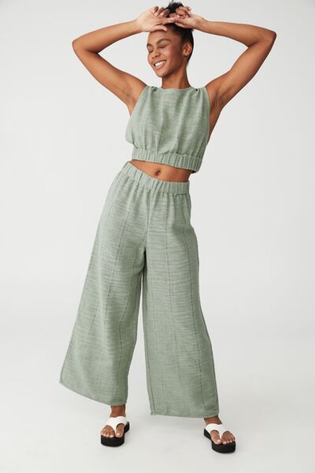 Karakteristika e tyre kryesore janë pëlhurat shumë të freskëta, të cilat variojnë midis pambukut, lirit dhe mëndafshit. Siluetat e gjera dhe të relaksuara u japin pantallonave një përshtatje të rehatshme.