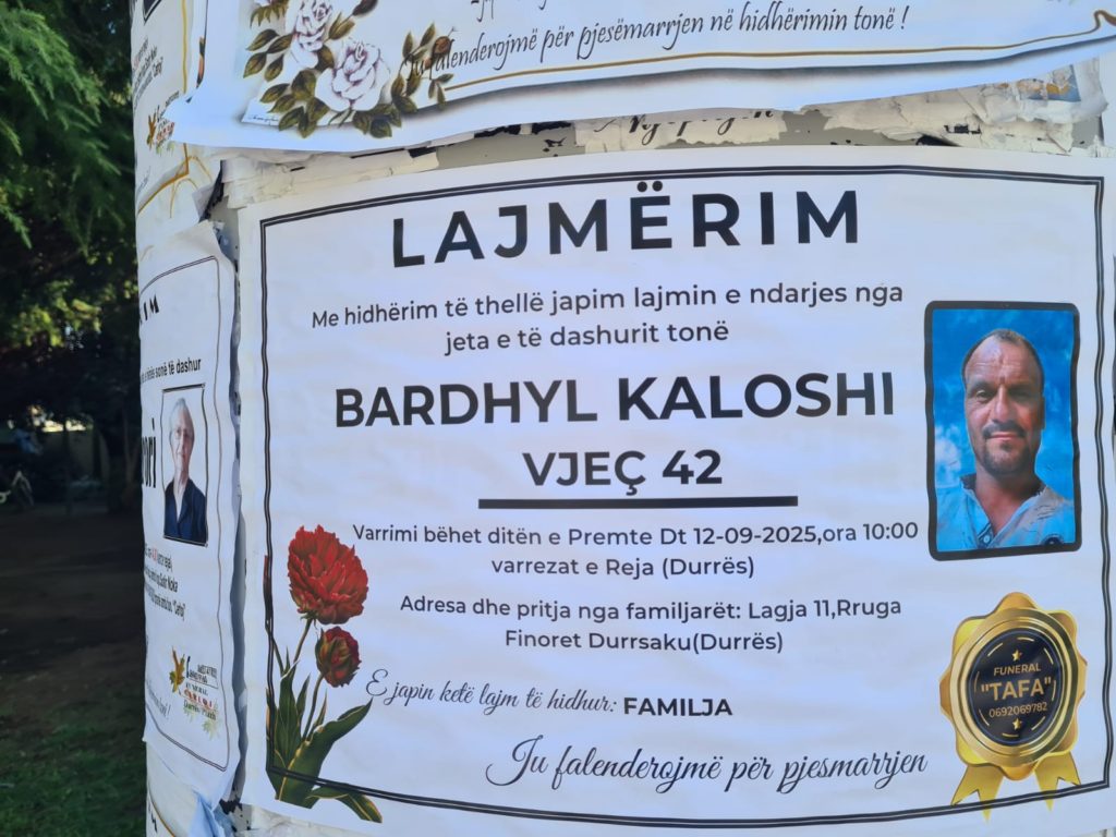 I është dhënë paraditen e kësaj të premteje lamtumira e fundit 42-vjeçarit Bardhyl Kaloshi, i cili mëngjesin e një dite më parë humbi jetën tragjikisht në rrugën “Mujo Ulqinaku” pranë stadiumit të Durrësit