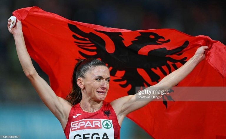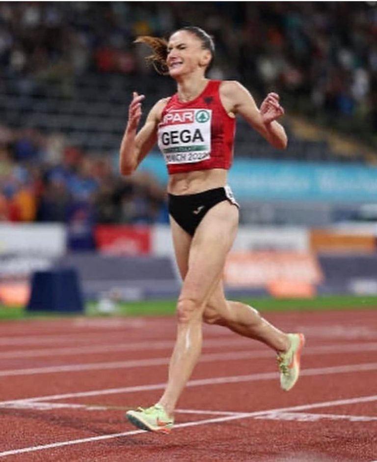 Me kohën 9 minuta 11 sekonda e 31 të qindtat dhe duke shënuar edhe rekord për kampionatin europian, Gega përmirësoi gjithashtu me 6 sekonda rekordin që mbahej nga rusja Zaripova që prej vitit 2010.