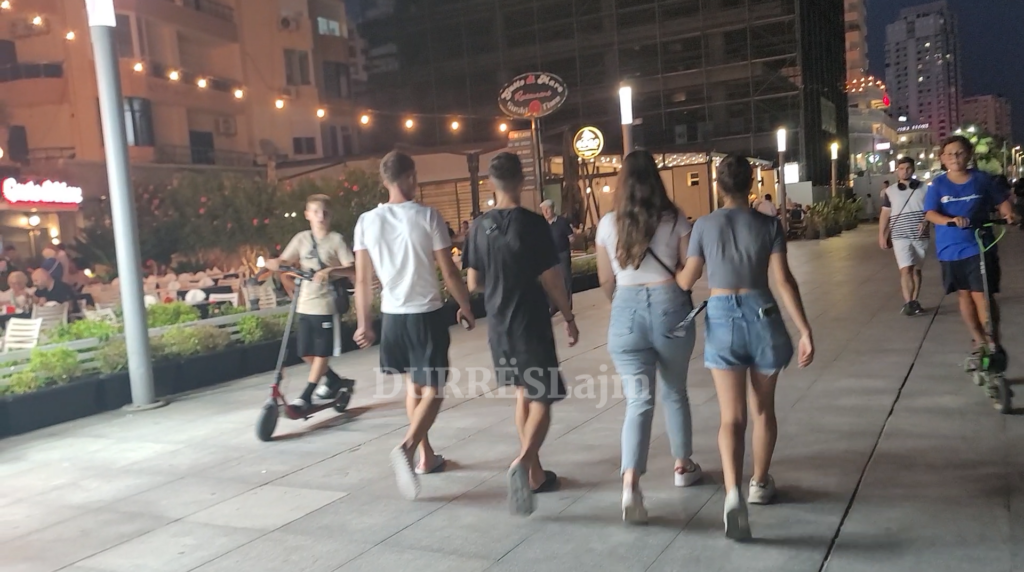 Në kulmin e lëvizjes së kalimtarëve, monopatinat, me një apo dy persona mbi to, dredhojnë mes kalimtarëve të shumtë, që i mbipopullojnë gjatë verës këto shëtitore.