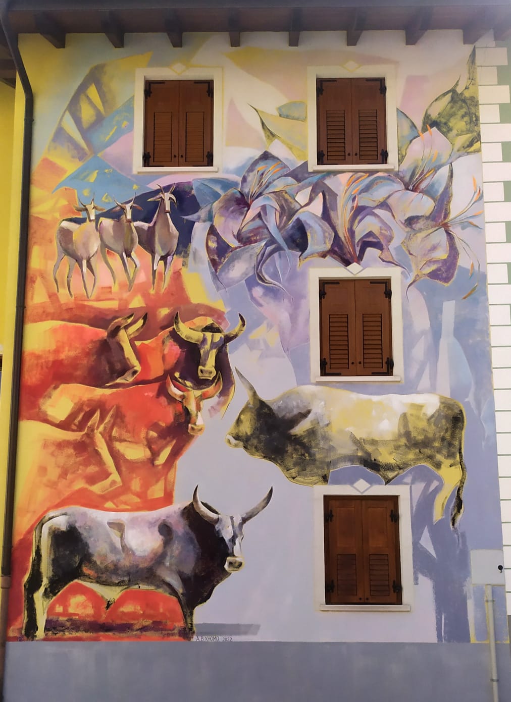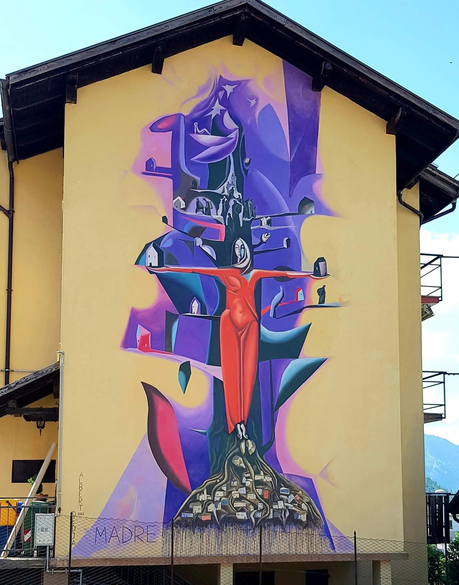 Migracioni i fillimmshekullit të kaluar nga kjo zonë alpine e Italisë drejt vendeve të ndryshme të botës e ka bërë më të lehtë zgjedhjen e temës së murales nga ana e piktorit Albert Dedja.