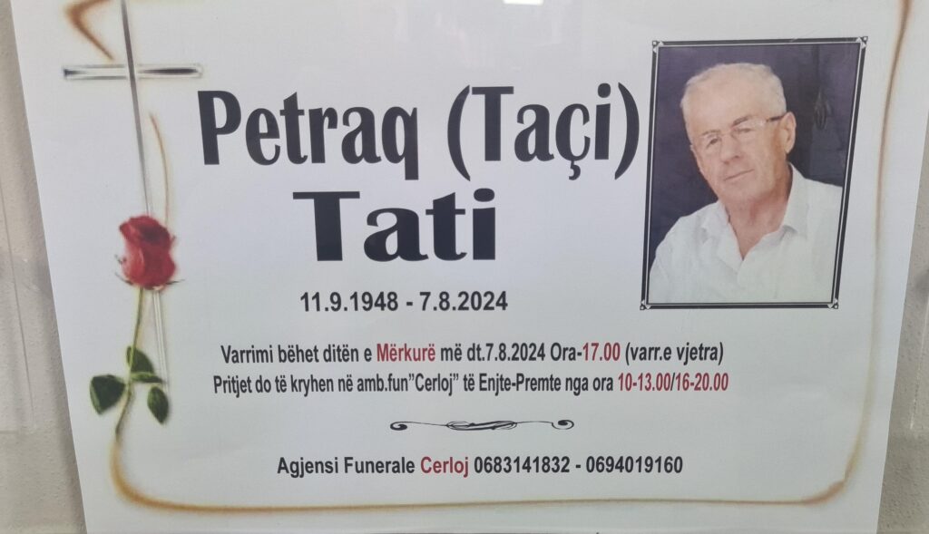 Është ndarë nga jeta në moshën 76-vjeçare ish-drejtori i Uzinës Radio-Televizorëve, Petraq (Taçi) Tati.
