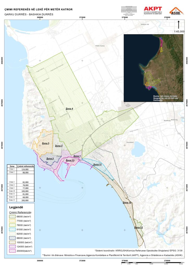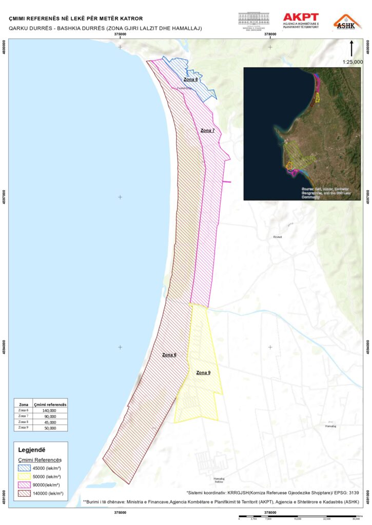 “DurrësLajm” ka siguruar hartën që përcakton ndarjen e zonave kadastrale dhe çmimet respektive për secilën prej tyre.