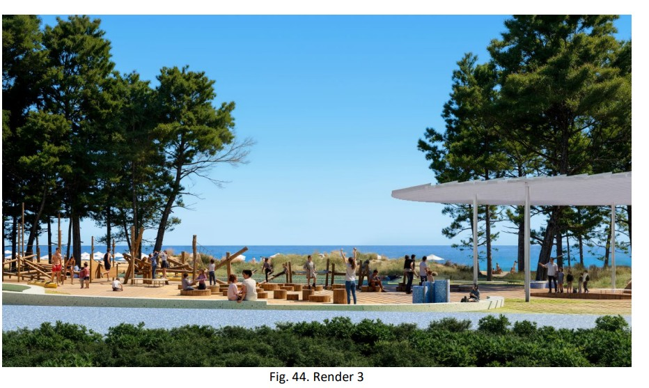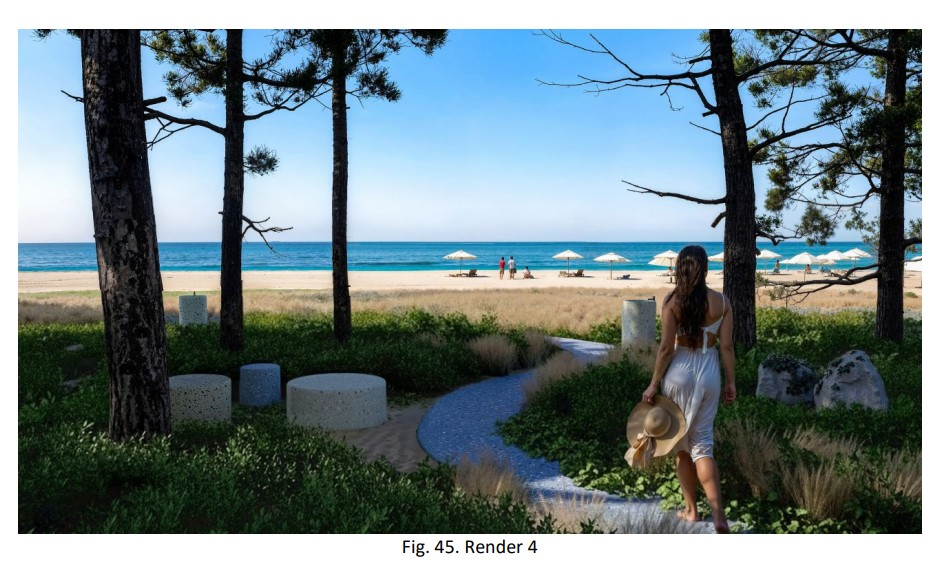 Ai përfshin zgjerimin e plazhit ekzistues, krijimin e një parku linear të gjelbër përgjatë vijës bregdetare, zhvillimin e hapësirave publike shumë funksionale dhe integrimin e infrastrukturave të reja rekreative dhe sportive.