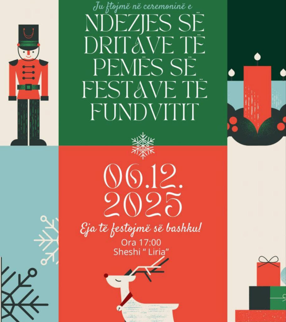 “Ejani të festojmë së bashku ndezjen e dritave ✨ të pemës simbol të festave të fundvitit 🎄 në një koncert plot atmosferë festive dhe muzikë. Ju mirëpresim nesër, 🗓️ datë 6 dhjetor, ⏰ ora 17.00, 📍 sheshi “Liria”, njofton bashkia nëpërmjet një postimi në rrjetet sociale.