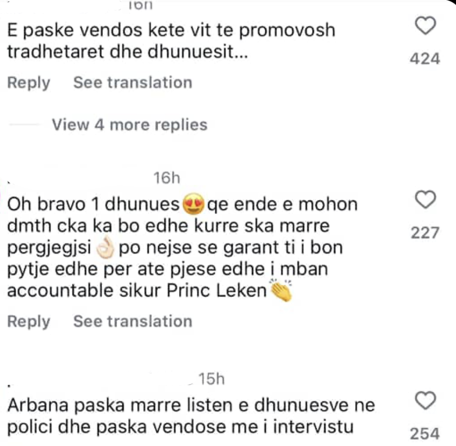 Disa u shprehën se Arbana po ndihmon dhunuesit të “pastrojnë imazhin” dhe po u jep zë atyre.