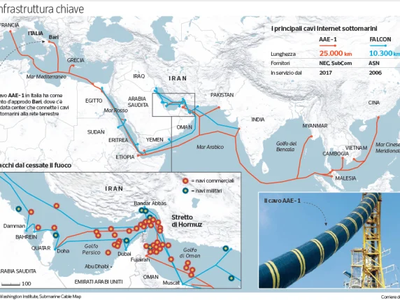 Këto kabllo (sipas disa analistëve, ato mbartin mbi 15% të trafikut global të të dhënave) janë oksigjen dixhital për Emiratet e Bashkuara Arabe, Katarin, Bahreinin, Kuvajtin, Arabinë Saudite dhe Irakun. Dëmtimi i tyre nuk do të prishte vetëm mediat sociale ose qasjen e ngadaltë në internet në rajon.