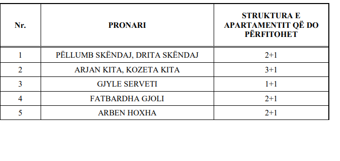 Nëpërmjet këtij njoftimi thirren të gjithë përfituesit sipas listës më poshtë: