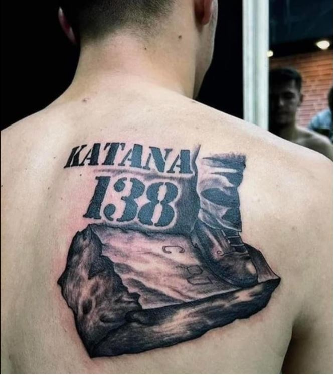 Mirlind Daku ka gdhendur në trup fjalën ‘Katana 138’, nofka e komandantit legjendar të UÇK-së Agim Ramadani si dhe piramidën e rrëzuar të kufirit shqiptar.