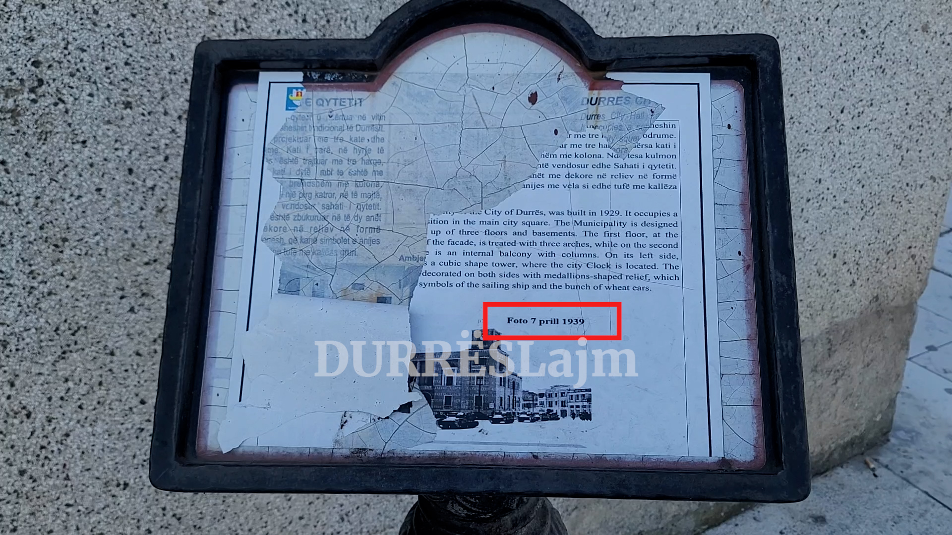Më 7 prill 1939, ditën e pushtimit të Durrësit nga trupat fashiste, fotografëve profesionistë të Institutit Luce nuk u shpëtoi nga vëmendja godina e bashkisë, të cilën e fiksuan në celuloid.