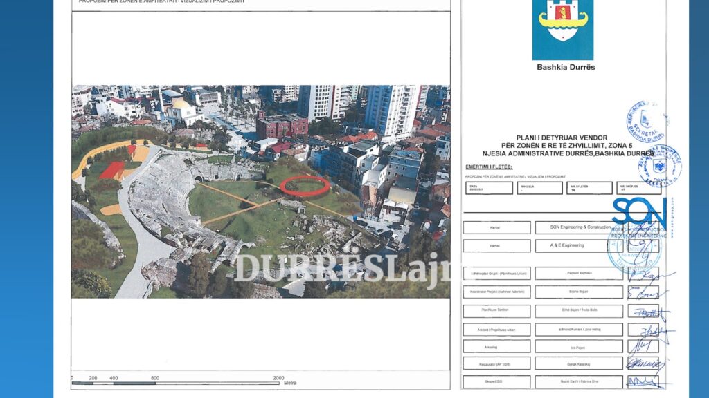 3 vite më parë, në tetor 2022,  arkitekti ndërkombëtar Stefano Boeri prezantoi në Ministrinë e Kulturës, përpara specialistëve dhe anëtarëve të bordit të Fondit Shqiptaro-Amerikan për Zhvillim (The_AADF), një projektide mbi restaurimin dhe rijetësimin  e amfiteatrit, ku siç duket edhe në pamjet filmike që po transmetojmë bie në sy stuktura e hekurt, apo një “Velierë” e dytë në qytet, por këtë herë mbi amfiteatër.