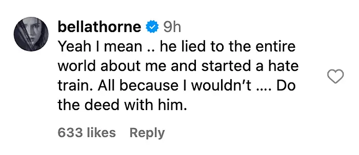“Epo dua të them… ai gënjeu gjithë botën për mua dhe nisi një zinxhir urrejtjeje. E gjitha sepse unë s’pranova…të shkoja me të”, shkroi 27-vjeçarja.