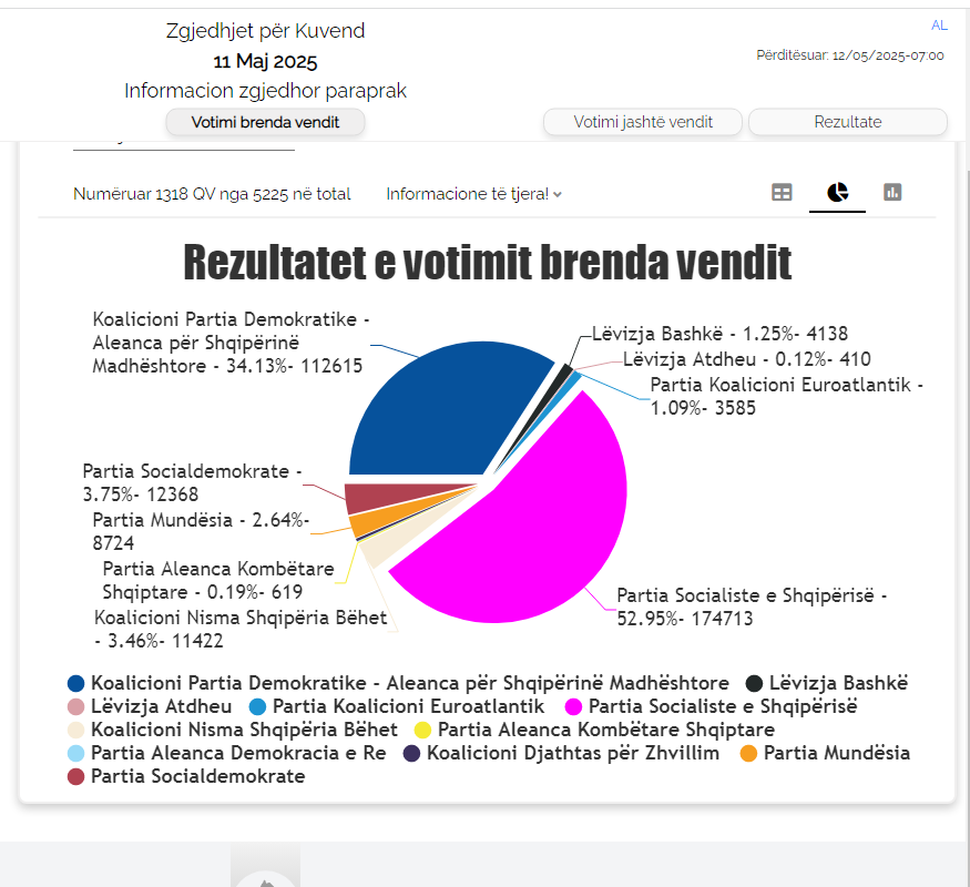 Janë numëruar 1318kuti votimi nga 5225 në total për zgjedhjet parlamnetare. Numërimi nuk ka nisur në gjithë qarqet, teksa janë numëruar kutitë e para në 12 qarqet e vendit.