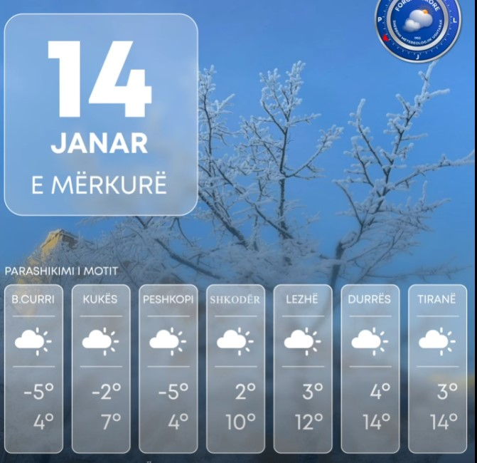Sipas Shërbimit Meteorologjik Ushtarak, ditën e sotme vendi ynë do të ndikohet nga kushte atmosferike të qëndrueshme. Moti parashikohet me kthjellime dhe vranësira kalimtare në pjesën më të madhe të territorit.