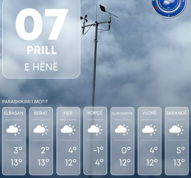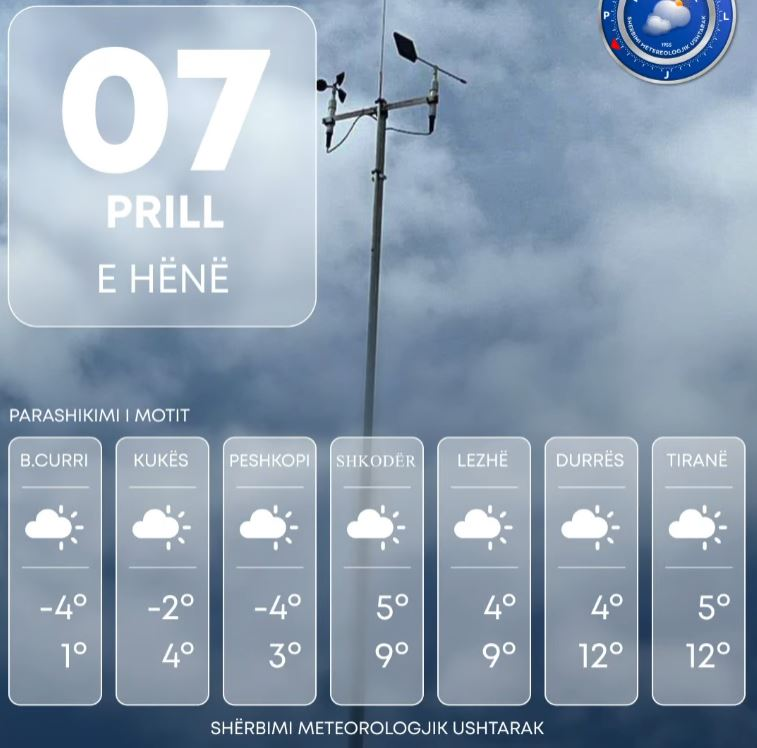 Temperaturat e ajrit do të pësojnë sërish rënie si në orët e mëngjesit EDHE të mesditës duke luhatur vlerat ditore nga -4°C vlera më e ulët deri në 16°C vlera më e lartë në rang territori.