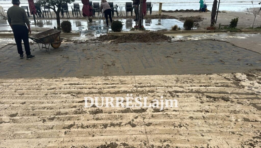 Sasi të konsiderueshme rëre janë depozituar në shëtitore, duke mbërritur deri në hyrjet e lokaleve e restoranteve buzë detit.