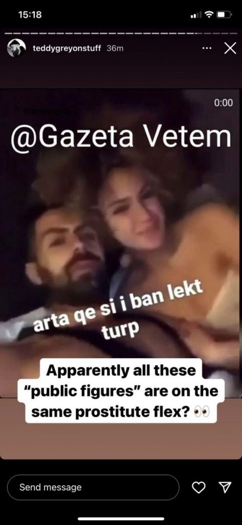 Ai ka publikuar sot foton e Elezajt me një mashkull misterioz teksa shkruan: “Me sa duket, të gjitha këto ‘figura publike’ janë në të njëjtin kategori prostitutash”.