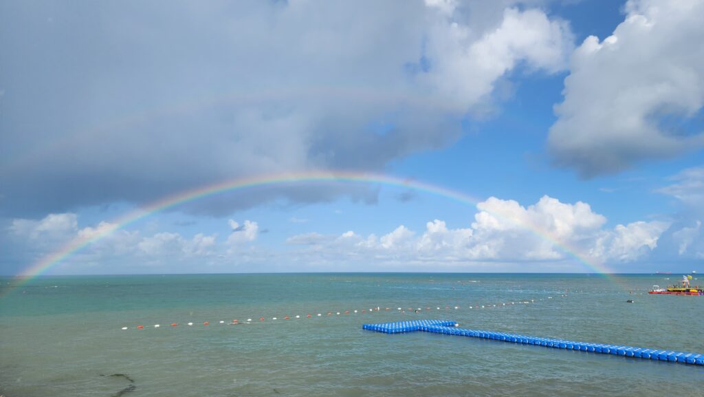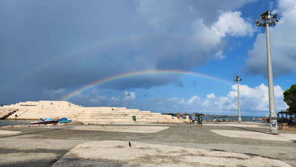 Reshjet, megjithëse të përkohshme, kanë sjellë një freskim të ndjeshëm të motit dhe pamje të rralla natyrore si ylberi mbi det.