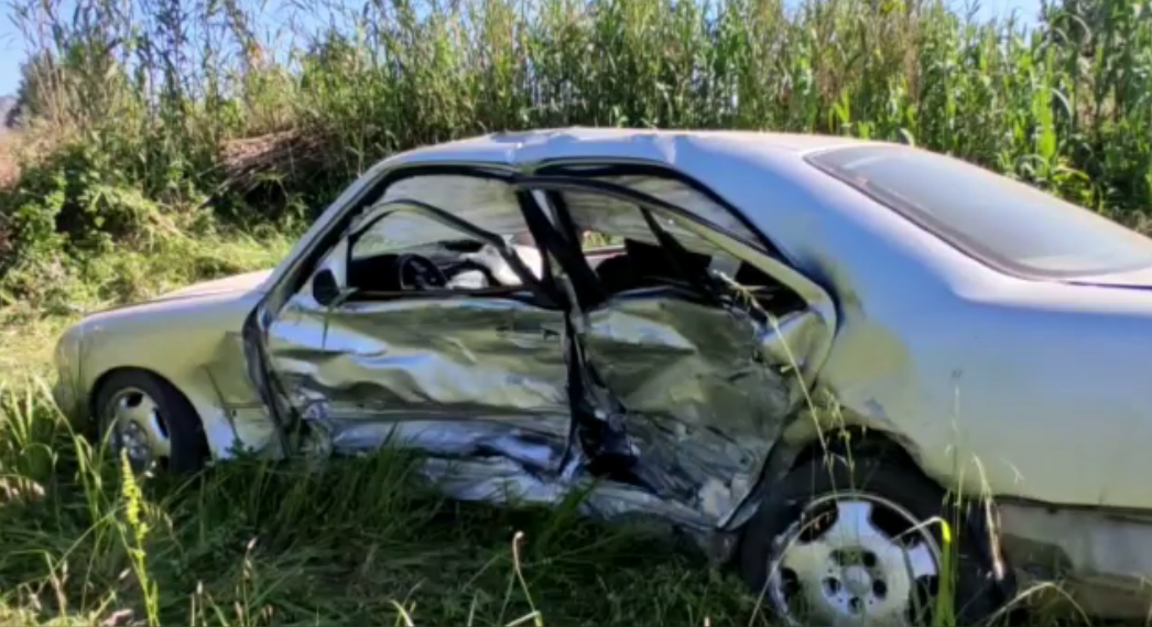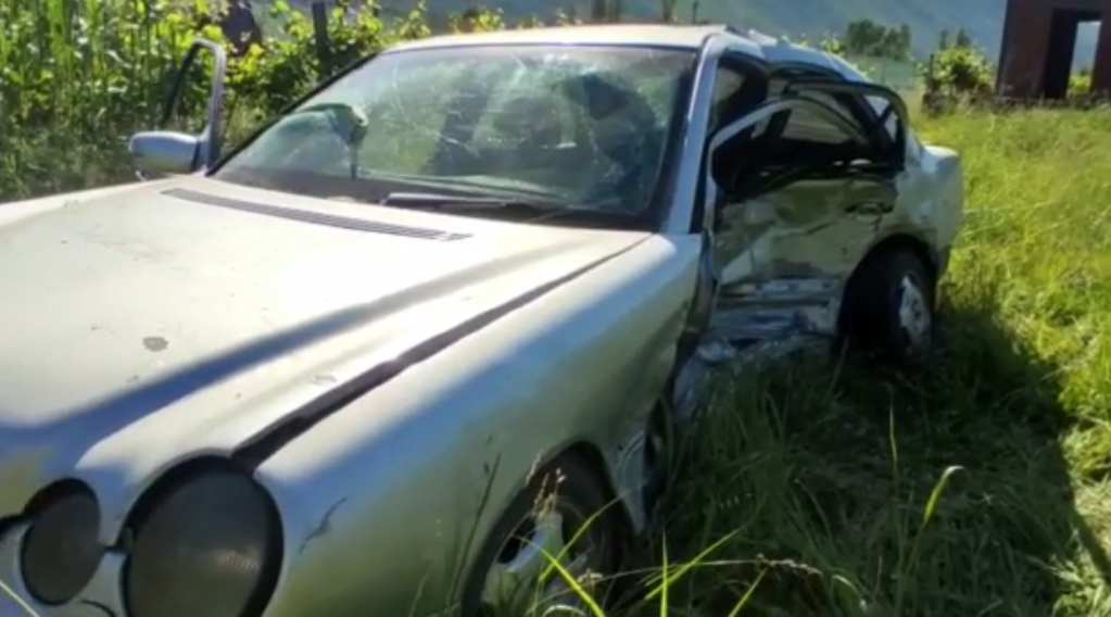 Nga përplasja e fortë, njëra nga makinat ka dalë jashtë rrugës, duke përfunduar në një parcelë.