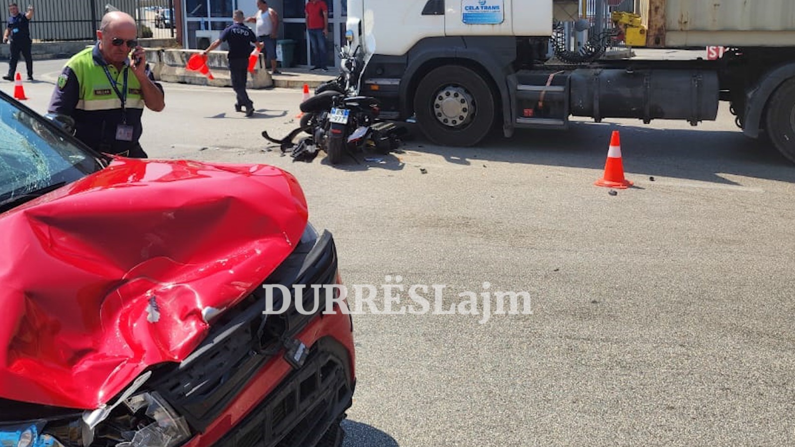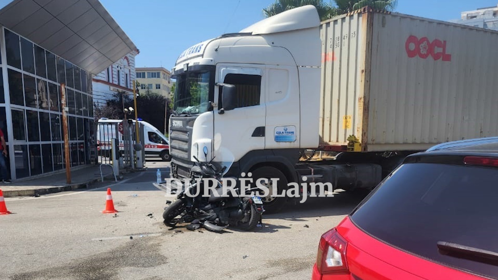 Një automjet tip “Suzuki” dhe një motor janë përfshirë në një aksident pak minuta më parë pranë hyrjes së portit në Durrës, përballë BKT-së.