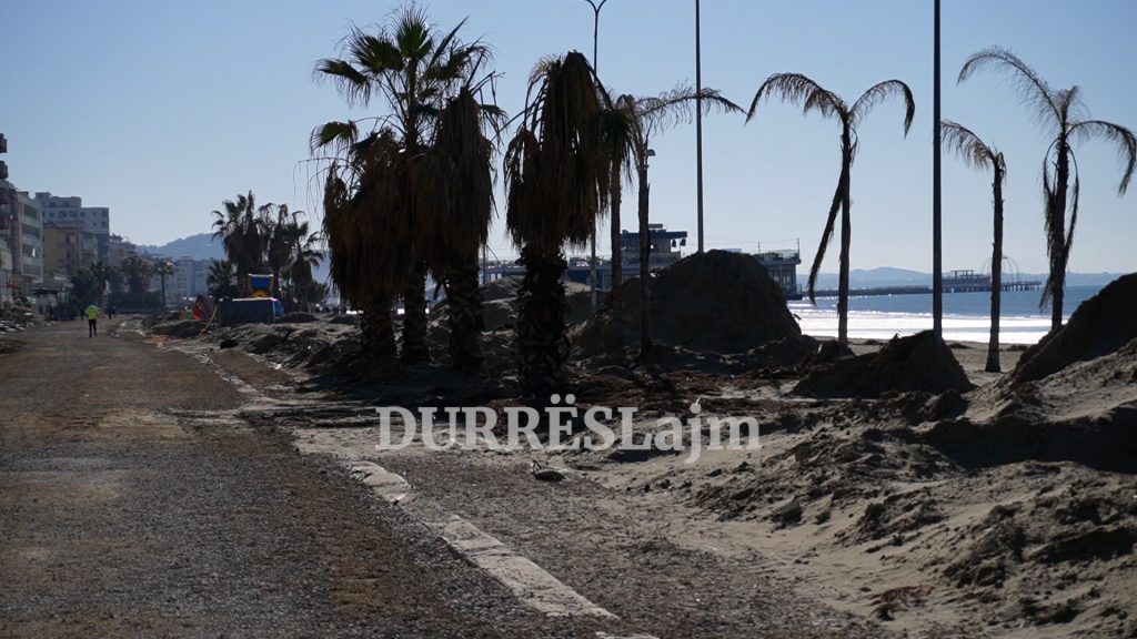 Përveç pedonales 7 metra të gjerë, ndërhyrja po realizohet edhe në det për të zgjeruar sipërfaqen ranore.