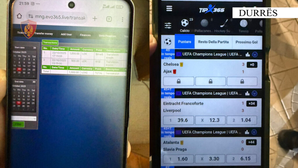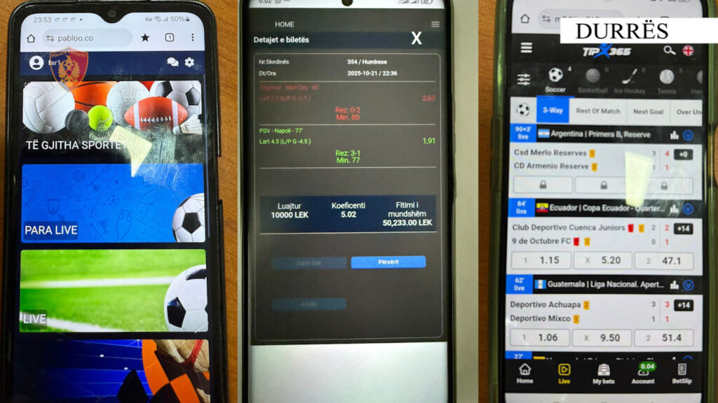 “Si rezultat i kontrollit të kryer në bazë të informacioneve të siguruara në rrugë operative, se në një lokal në lagjen nr. 13 Plazh, viheshin baste sportive, me celularë, shërbimet e Stacionit të Policisë Plazh, në bashkëpunim me shërbimet e Komisariatit të Policisë Durrës: