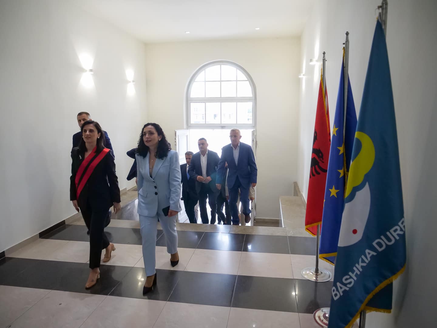 Kryebashkiakja e Durrësit Emiriana Sako ka pritur pasditen e sotme në bashki, Presidenten e Republikës së Kosovës Vjosa Osmanin, e cila ndodhet në Shqipëri për një vizitë dy ditore.