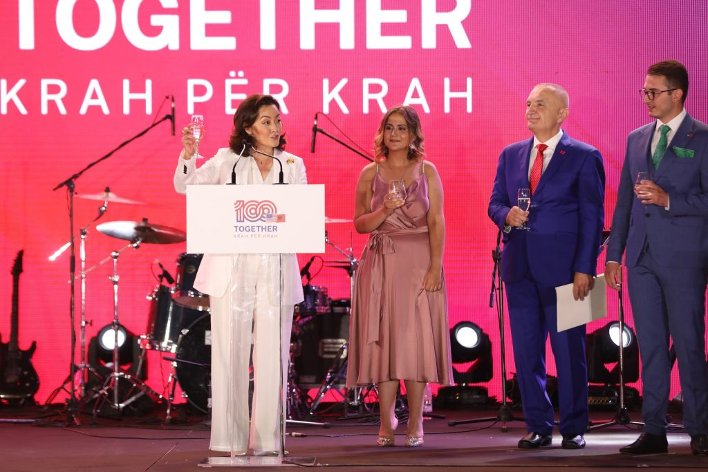 Ambasadorja amerikane në Tiranë, Yuri Kim, publikoi në rrjetet sociale disa foto nga pritja e organizuar mbrëmjen e të premtes me rastin e festimeve për Ditën e 246-të të Pavarësisë së Shteteve të Bashkuara dhe 100 vjetorin e marrëdhënieve midis SHBA dhe Shqipërisë.