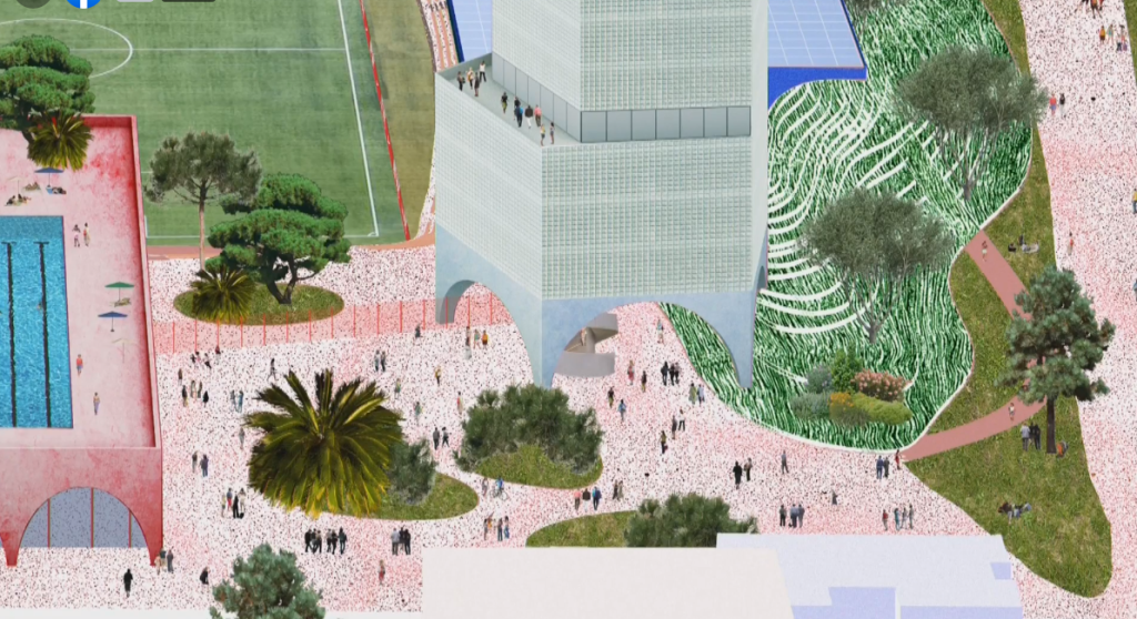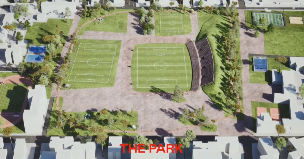 Projekti parashikon jo vetëm ndërtimin e stadiumit, por edhe hapësira urbane rreth e qark, pishina, shëtitore, si dhe rritjen e sipërfaqeve të gjelbërta.