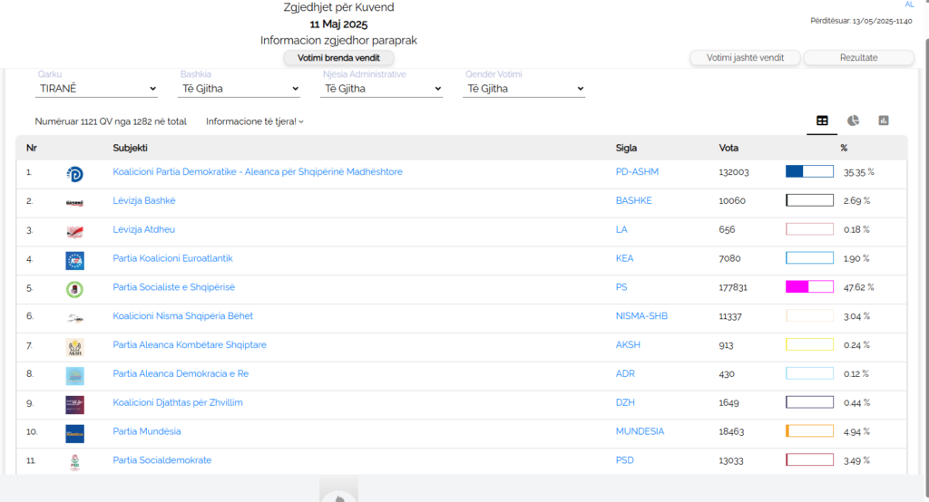 Koalicioni opozitar, PD-ASHM numëron 132,003 vota ose 35.35%.