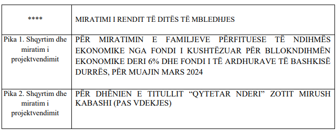 Një mbledhje jashtë radhe do të mbahet ditën e nesërme më 16 prill nga Këshilli Bashkiak Durrës.